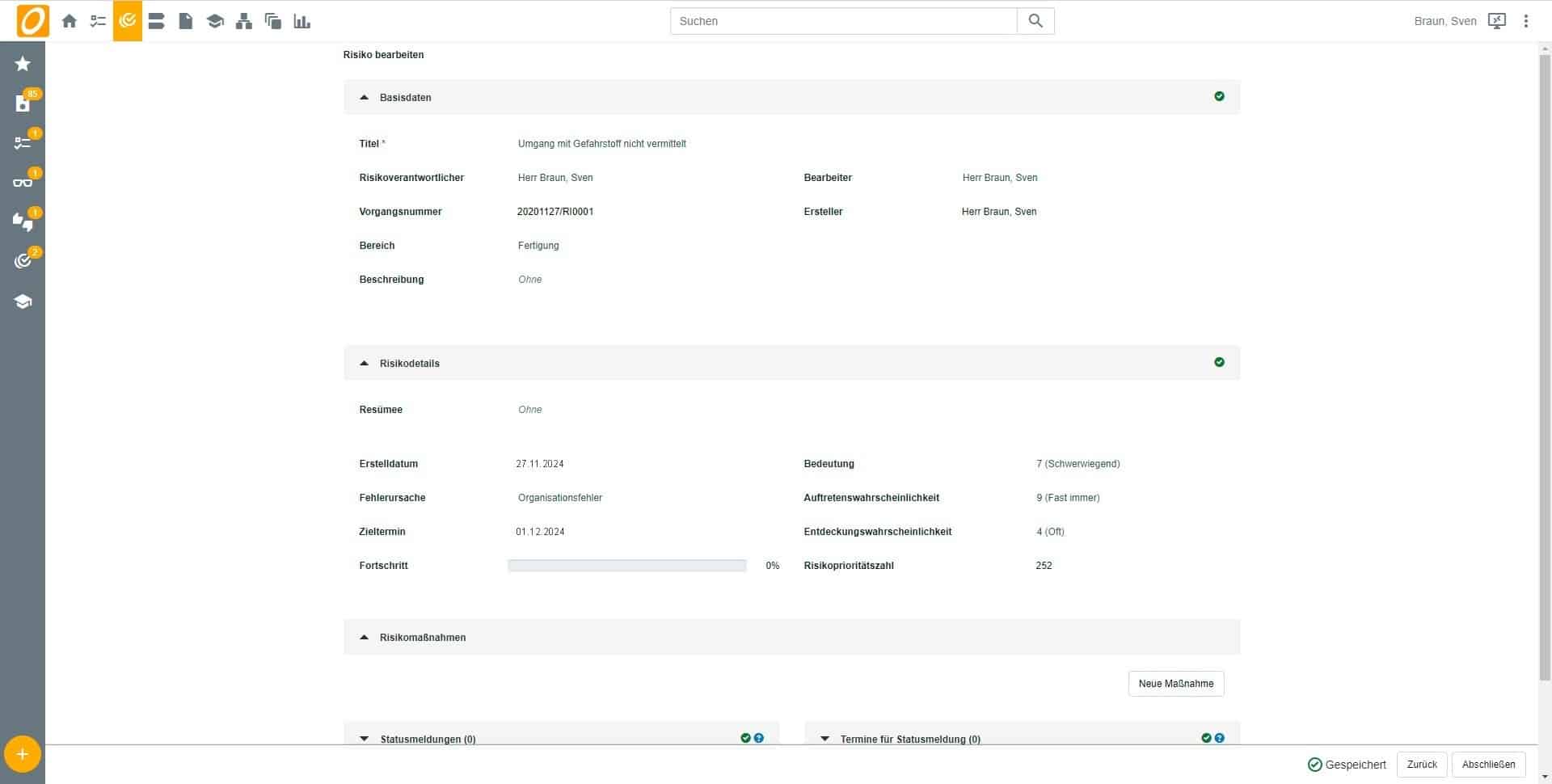 Schnelle Erfassung von Risiken in unkomplizierten Bearbeitungsmasken