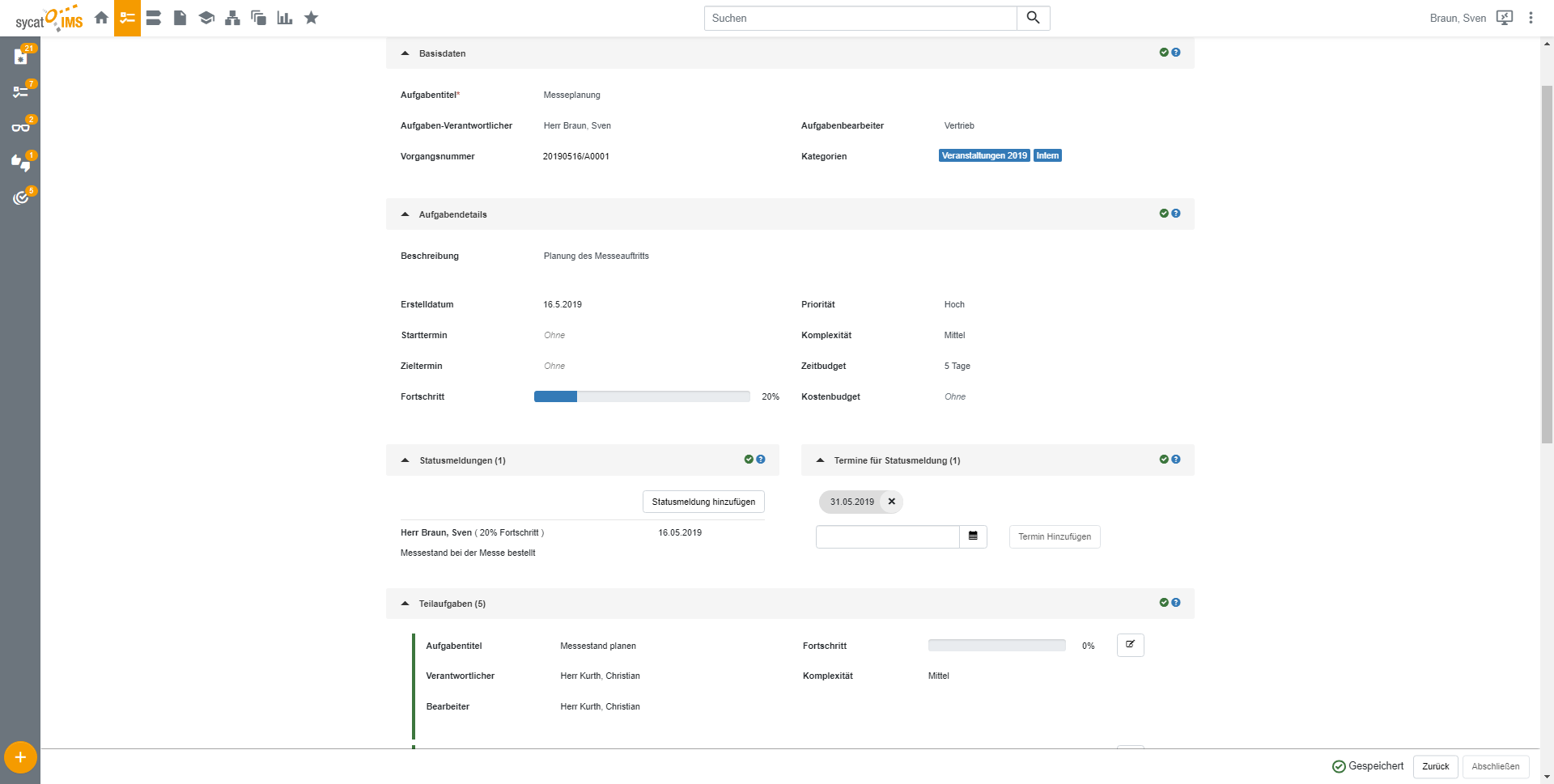 Erstellung, Planung, Delegation, Kontrolle und Dokumentation von Maßnahmen und Aufgaben im Unternehmen.