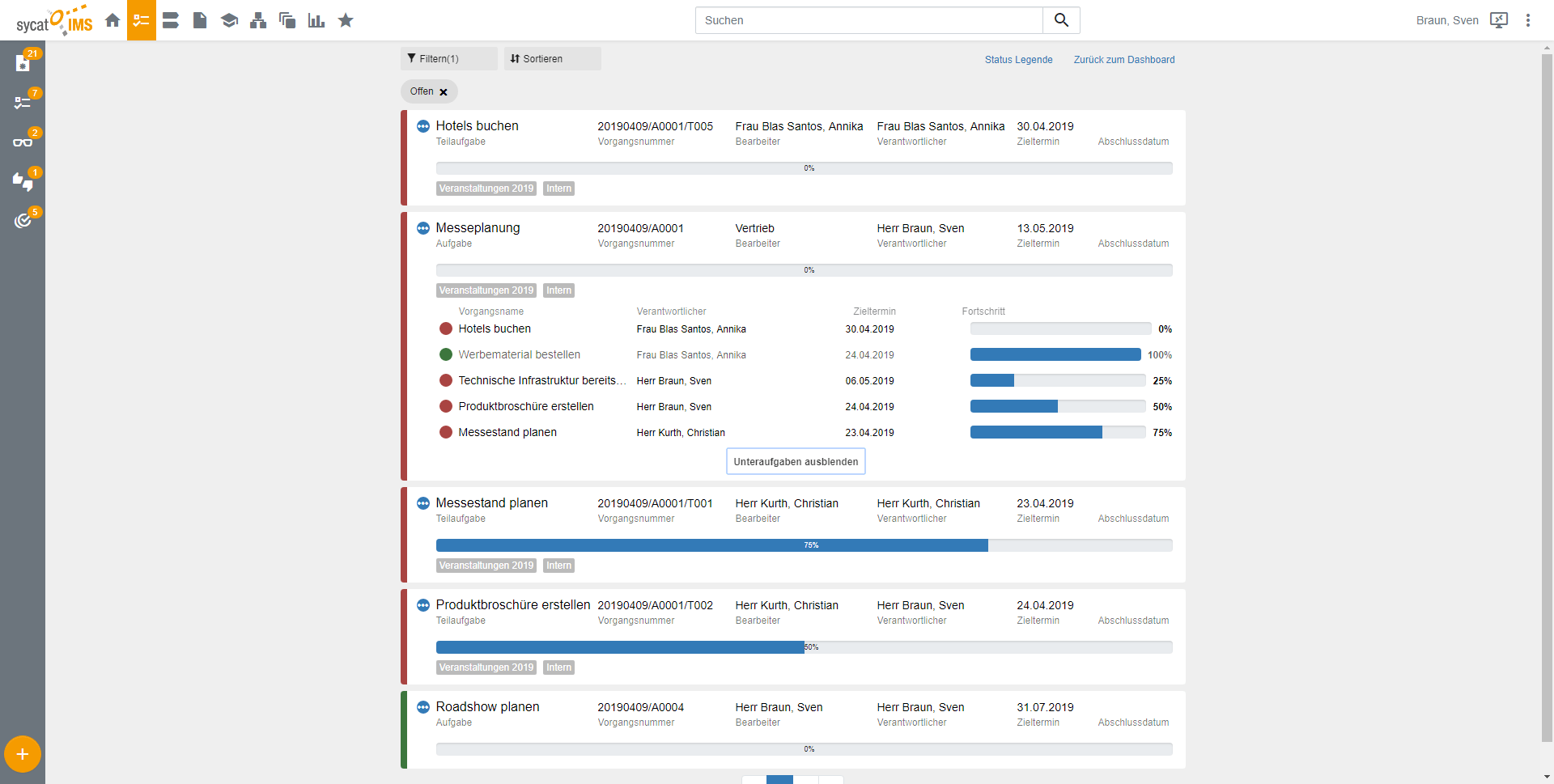 Managen Sie alle Aufgaben und die Maßnahmen aus dem KVP unternehmensweit mit einer Standardanwendung. Mit sycat MAM kann jeder Mitarbeiter schnell und einfach Aufgaben anlegen, delegieren und abarbeiten.