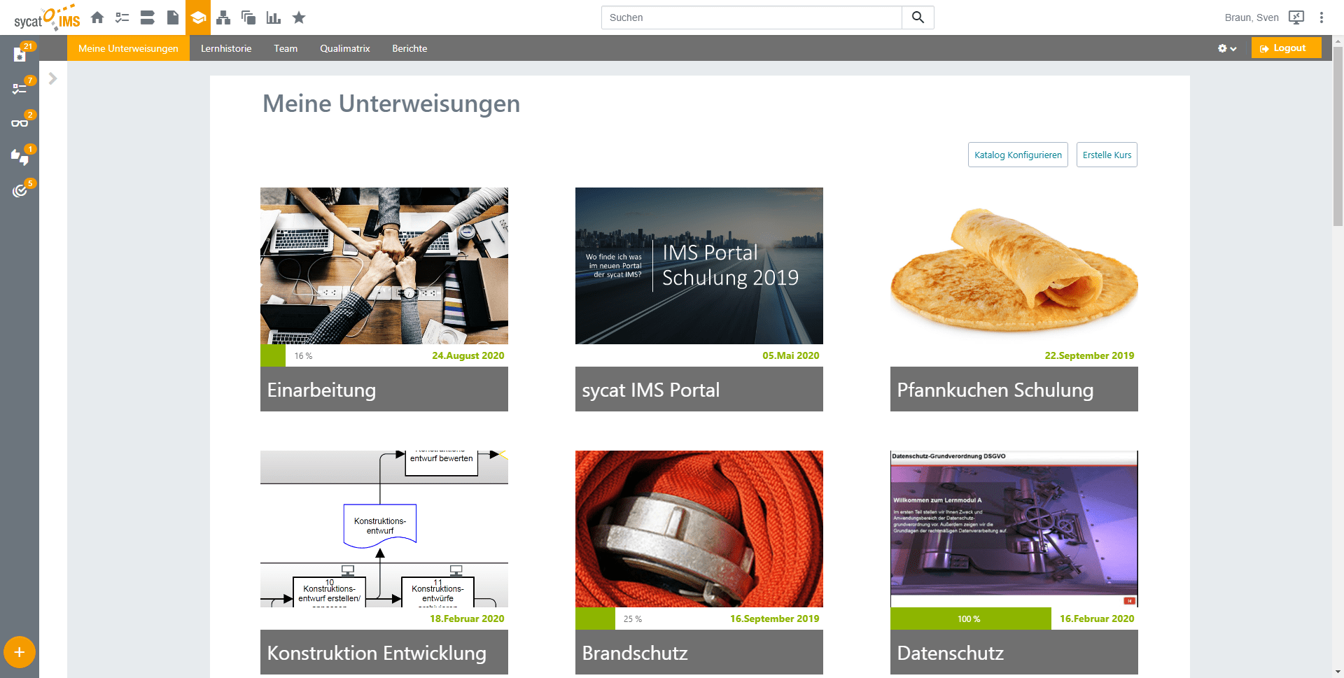 • Persönliche Dashboards mit zu tätigenden Unterweisungen und Kursen sowie Fortschrittsanzeigen