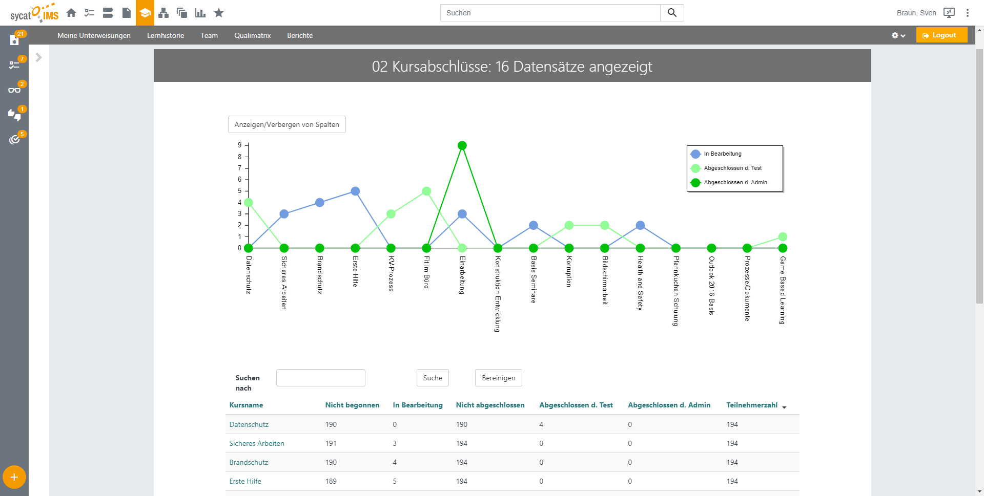 Die Verantwortlichen haben immer kompletten Überblick auf den Qualifikations- und Lernstand ihrer Mitarbeiter und zahlreiche andere Statistiken.